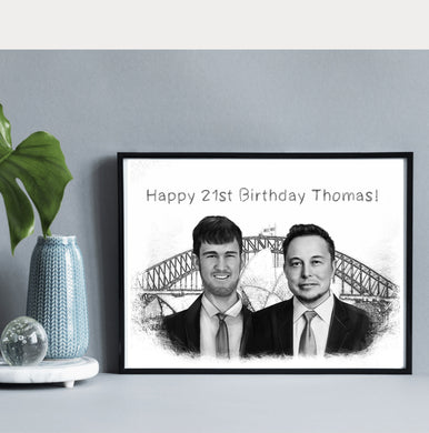 We all have heroes and sometimes the most fun gift idea is to get them a drawing with the people they admire. We can draw you with any movie star, TV personality, cartoon character, superhero, princess... absolutely anyone! This is a great option for both big and small kids, and for the big fans out there. As with all our drawings, we can add a detailed drawn background or patterned background too!